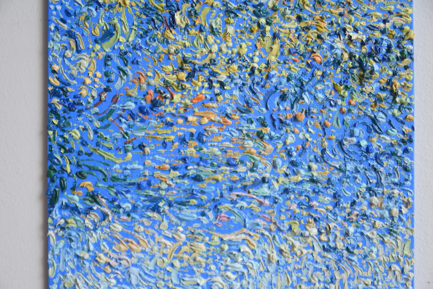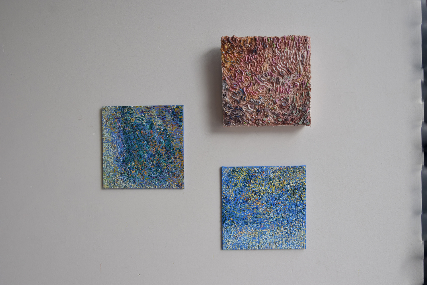 Anica Kitanoska often highlights aspects in nature that are typically overlooked, transforming them into compelling centerpieces. As a result, the lushness of the canopy and the roughness of the moss take on greater significance in her works. In both her paintings and mosaics, she applies paint or cement in the form of dots and vigorous strokes, trying to capture the feelings she experiences during these moments spent in nature.